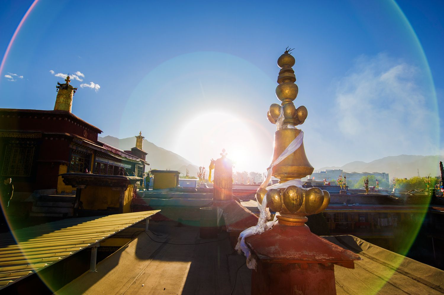 Luego, después del almuerzo, los turistas se dirigen al templo Jokhang, fundado por el gran rey número 33 del Tíbet en el siglo VII. En el interior se puede ver la estatua de Buda Sakyamuni a la edad de doce años. Afuera, puedes ver peregrinos haciendo postraciones frente al templo Jokhang. Alrededor del templo está la calle Barkhor, donde se puede hacer kora (un círculo religioso de un edificio o montaña) con peregrinos y lugareños, y explorar el antiguo mercado.
