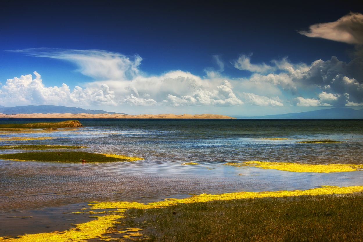 Ubicado a 3200 metros sobre el nivel del mar, el lago Qinghai es el mayor lago interior y de agua salada en China. El lago tiene diferentes paisajes en cuatro estaciones y se ha convertido en un destino popular para andar en bicicleta y observar aves.
