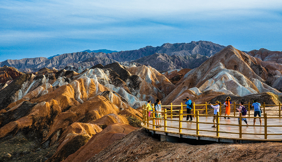 Luego, diríjase a Zhangye Danxia Landform, que también se conoce como el dulce de Zhangye. El parque está rodeado de coloridas colinas, que parecen elevarse y caer como olas, con estratos de rocas de diferentes colores mezclados en un elegante desorden.