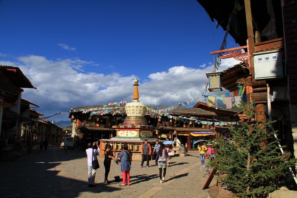 Por la tarde, visite el casco antiguo de Dukezong con una historia de 1300 años. Sube a la cima de la colina de Guishan (o Tortoise Hill) para tener una vista panorámica del casco antiguo y el condado de Shangri-La y únete a los turistas para convertir la Rueda de oración más grande del mundo. (Tenga en cuenta: en enero de 2014, se produjo un gran incendio que destruyó la mayor parte de la ciudad. Ahora puede visitar el área alrededor de Guishan Hill).