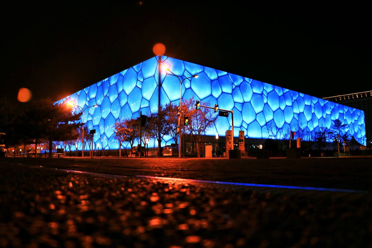 Estadio Nido de Pájaro y Estadio Cubo de Agua desde el exterior.
