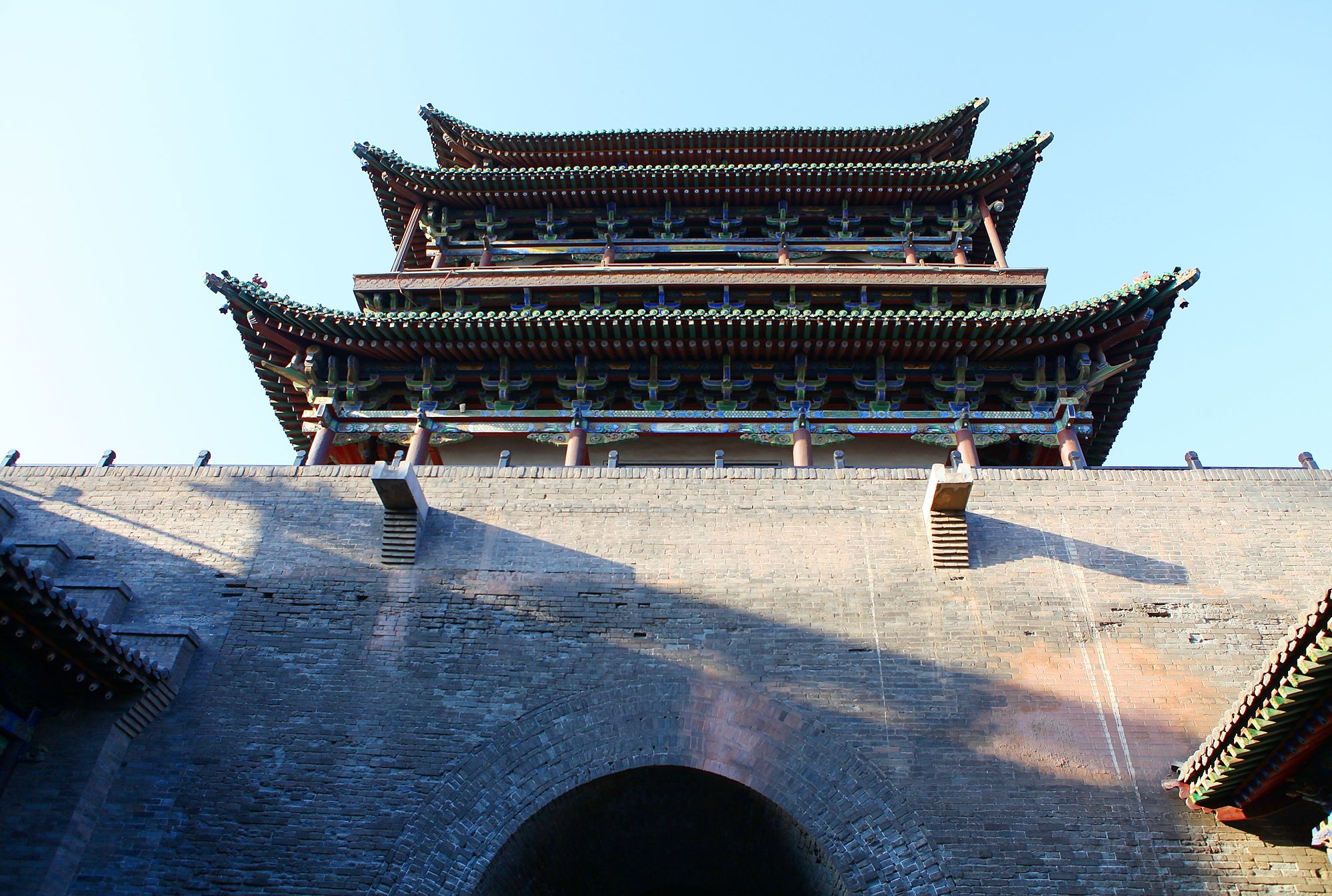 Muralla de la ciudad: La antigua ciudad de Pingyao City Wall, junto con el Templo de Zhengguo y el Templo de Shuanglin, es uno de los «tres tesoros» del condado.